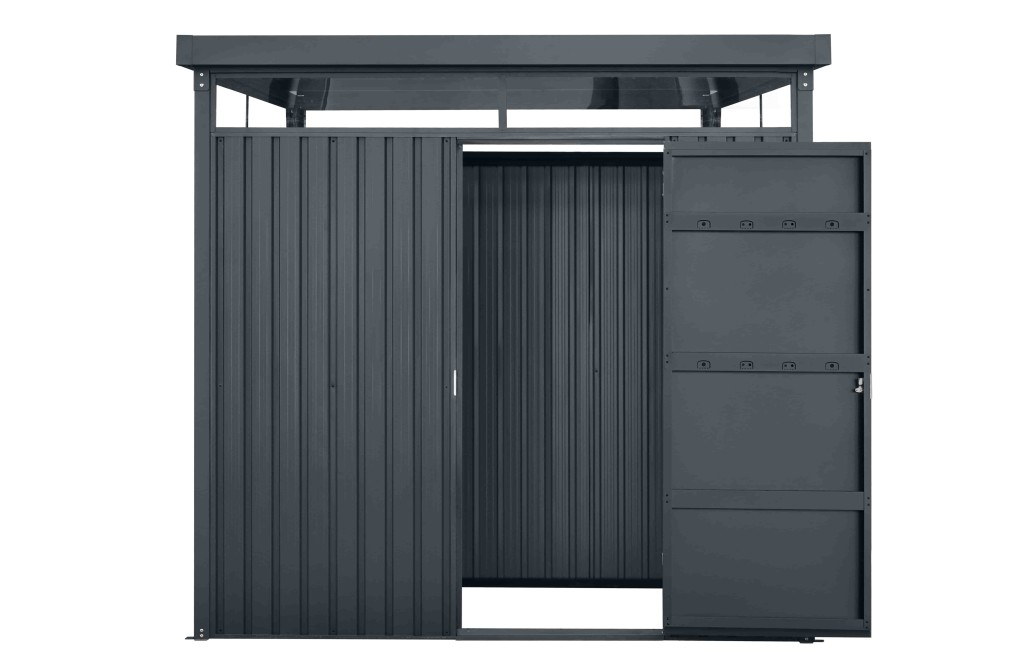 Dacă sunteți în căutarea unei soluții durabile, spațioase și practice pentru depozitarea uneltelor din grădină, Magazia VIVODECOR este alegerea perfectă. Această magazie este concepută pentru a răspunde tuturor nevoilor dumneavoastră de depozitare și dispune de un design modern și practic, cu efect Skytower. Ferestrele se pot deschide prin glisare, asigurând o bună ventilație și o mai bună protecție împotriva umidității.