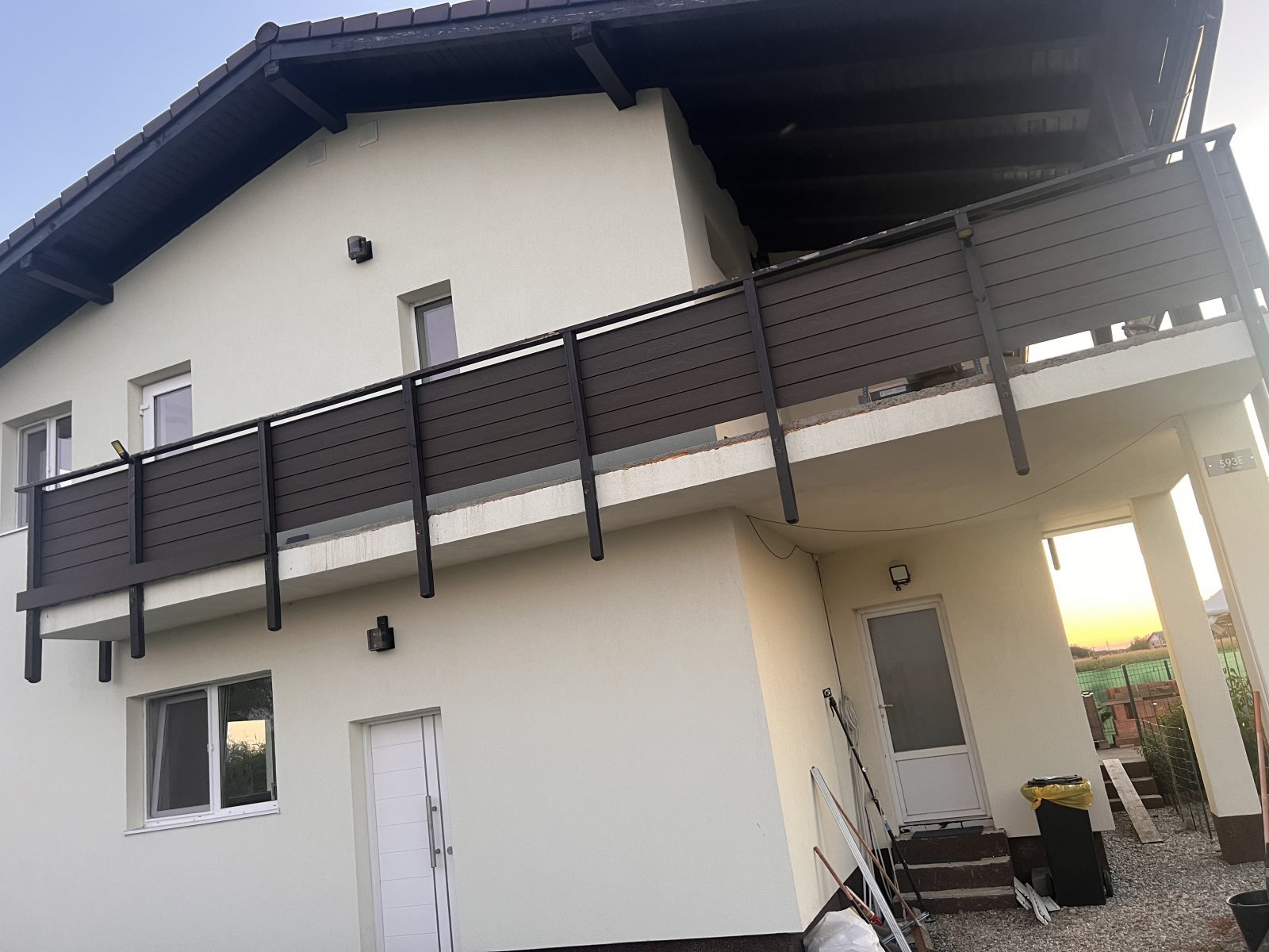 - Montarea plăcilor: Plăcile de WPC se fixează pe stâlpii de aluminiu folosind distantiere speciale și nu necesita fixare suplimentara