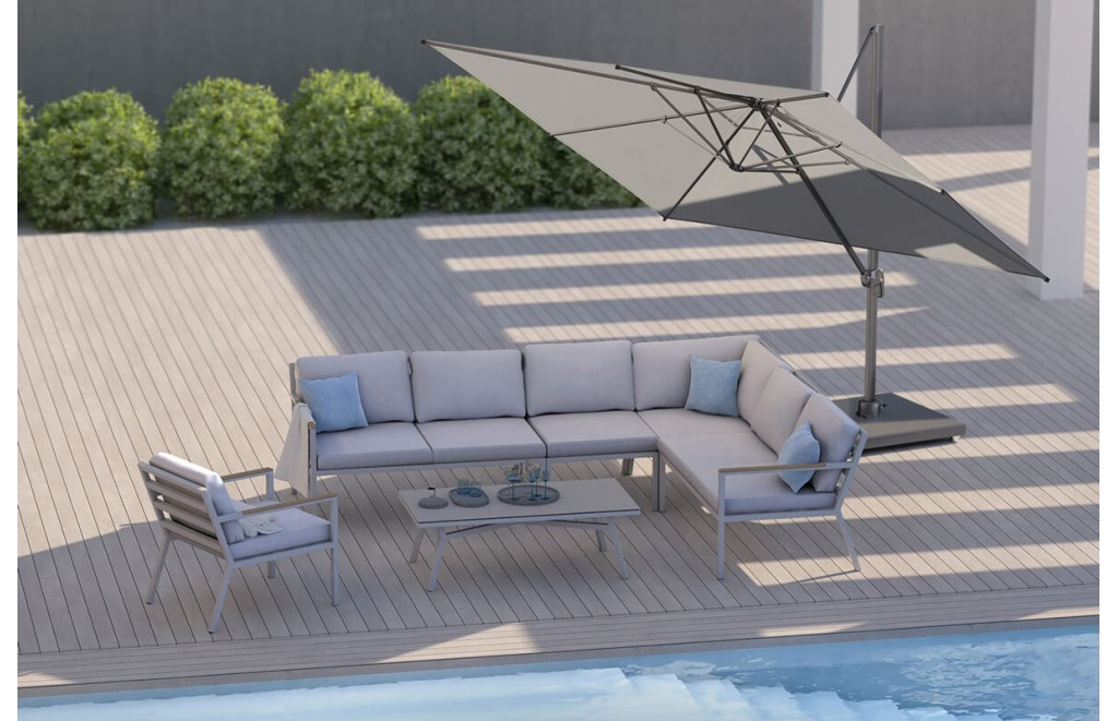 Această umbrelă pentru terasă și grădină are un design pliabil pe mai multe direcții, ceea ce o face foarte versatilă. În funcție de poziționarea soarelui și de zona de umbră pe care doriți să o creați, puteți plia umbrela într-un anumit fel pentru a obține cea mai bună acoperire. În plus, datorită structurii sale pliabile, această umbrelă este foarte ușor de instalat și de depozitat în perioadele în care nu este utilizată.